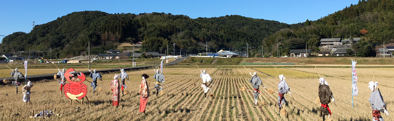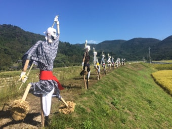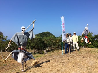 その伝統芸能「兵六踊り」の保存継承の一環として、登場人物に見立てた案山子を制作展示し、伝統芸能の継承保存と地域活性化の一助をなすための事業として2016年は第一幕(全3幕)の登場人物の大石兵六、平田五助、大川隼人之助、二才中等リアルな姿の案山子を10体制作展示し、各マスコミに広く取り上げられ地域の活性化に貢献しました。
